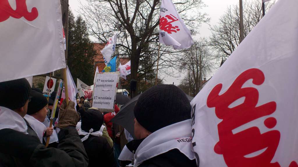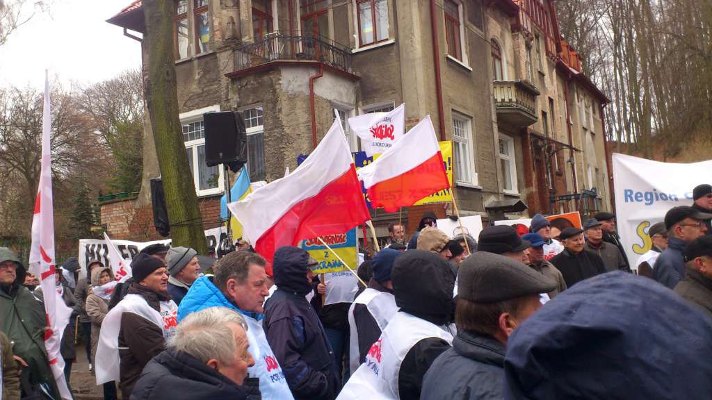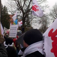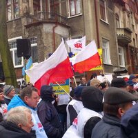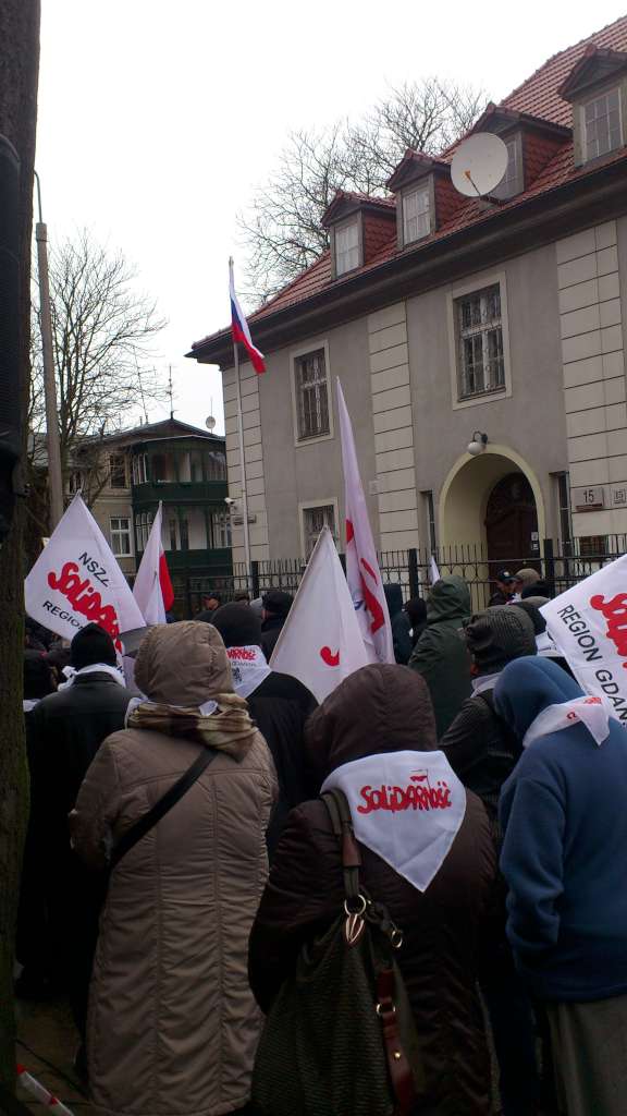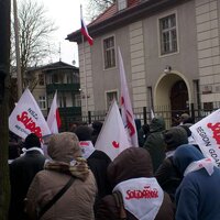 W sobotę 15 marca 2014 r. pod Konsulatem Federacji Rosyjskiej NSZZ "Solidarność" protestowała przeciwko polityce Putina, przeciwko agresji wobec Ukrainy. W ten sposób chcielismy też wyrazić swoje poparcie dla naszych sąsiadów. Na początku zabrzmiał hymn Polski i Ukrainy.