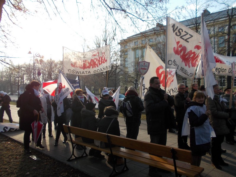 9 grudnia we wtorek znaczna grupa związkowców z naszej KM( 16 osób) i Sekcji Regionalnej Oświaty uczestniczyła w pikiecie zorganizowanej przez Krajową Sekcję Oświaty i Wychowania pod Urzędem Rady Ministrów w Warszawie.