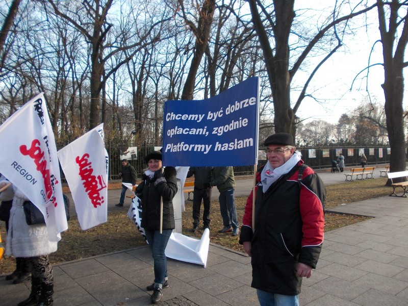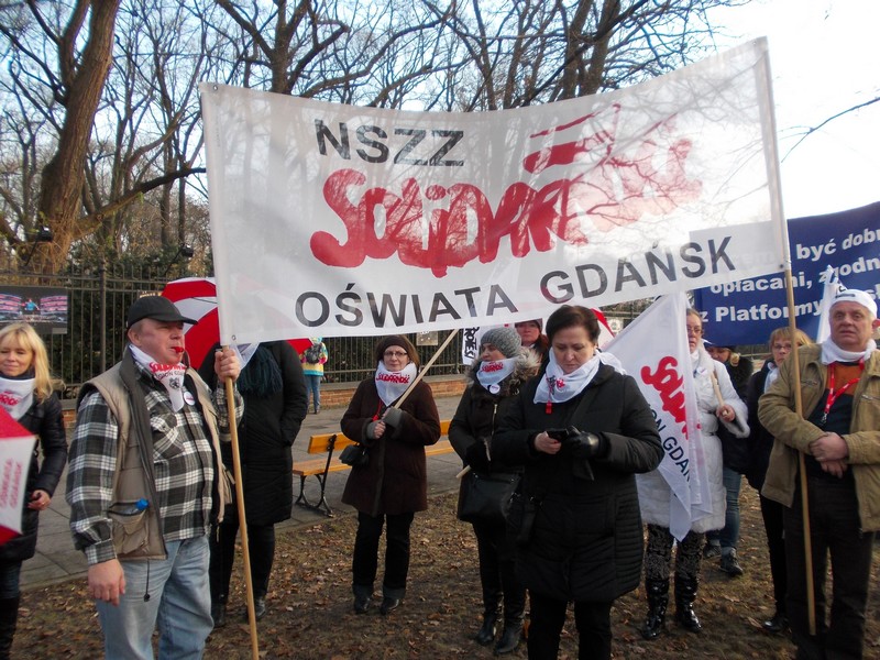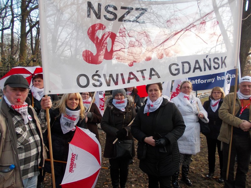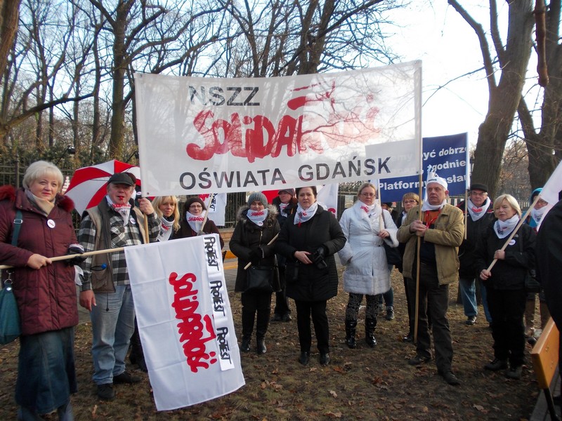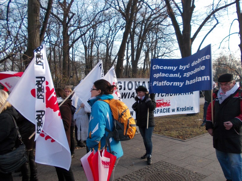 Mimo dość zimnego grudniowego dnia i przedświątecznego nastroju, do stolicy przyjechało ok 2000 osób, które głośno manifestowały swoje niezadowolenie z powodu bardzo trudnych warunków pracy, braku podwyżek – trzeci rok z kolei, z przepełnionych klas i świetlic, z obciążania nauczycieli wciąż nowymi obowiązkami, a przede wszystkim z powodu braku szacunku władz oświatowych do nauczycieli, nazywanych pośrednio nierobami o najdłuższych urlopach. Wielkie niezadowolenie wzbudził ostatni list minister Kluzik –Rostkowskiej zalecający rodzicom donoszenie na szkoły, które w okresie przerwy świątecznej nie zorganizują opieki nad uczniami ( podano nr. telefonu oraz e-mail, by rodzice mogli bezpośrednio „zawiadamiać MEN ‘’o zaniedbaniach szkół w tej kwestii).