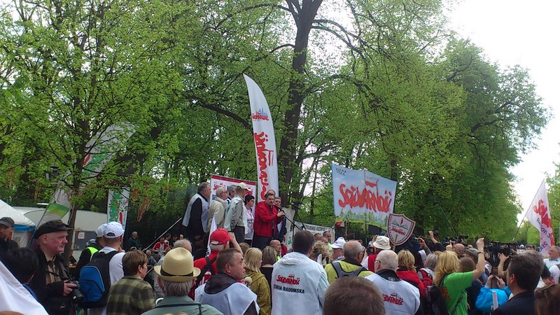 W samo południe do protestujących przemówił Przewodniczący Komisji Krajowej Piotr Duda, przekazując poparcie dla postulatów oświatowych, które zostały złożone w kancelarii Prezesa Rady Ministrów. Co prawda spotkanie z Panią Premier okazało się niemożliwe, ale do protestujących wyszła Pani Joanna Kluzik- Rostkowska – Minister Edukacji. Trzeba przyznać, że wykazała się pewną odwagą wychodząc przed kilkutysięczny tłum, ale to co powiedziała bardzo wzburzyło obecnych. Stwierdziła, że nie ma pieniędzy w budżecie na podwyżki ani w tym, ani w 2016 roku „ …a teraz możecie sobie pokrzyczeć” zakończyła swoją wypowiedź. Zabrzmiało to niegrzecznie, lekceważąco.