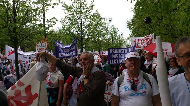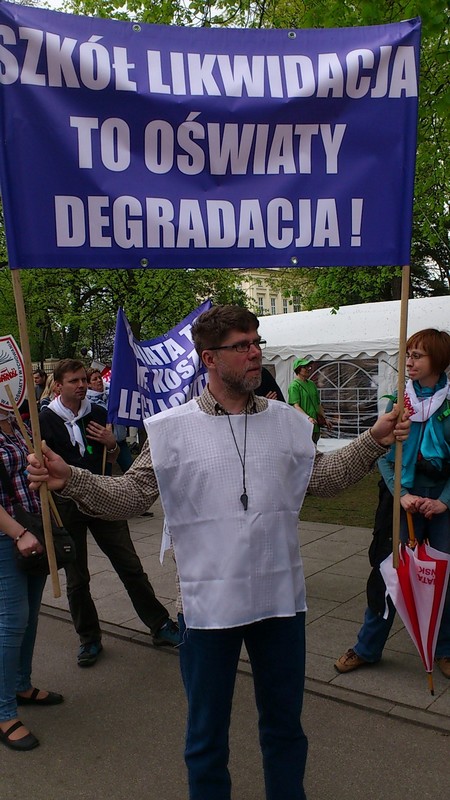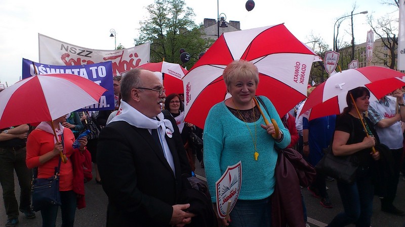 Ok. 13. 30 wyruszyliśmy pod Sejm, by złożyć petycje do klubów poselskich. Tam również mogliśmy wysłuchać przestawienia „Siłaczka”. Wśród zabierających głos był również Przewodniczący Gdańskiej Sekcji Oświaty Wojciech Książek, który przypomniał, że Karta Nauczyciela nie jest reliktem stanu wojennego, a została wynegocjowana przez ludzi Solidarności na początku lat osiemdziesiątych. Pamiętajmy o tym.