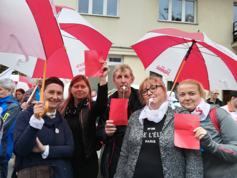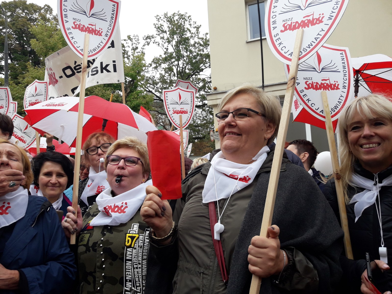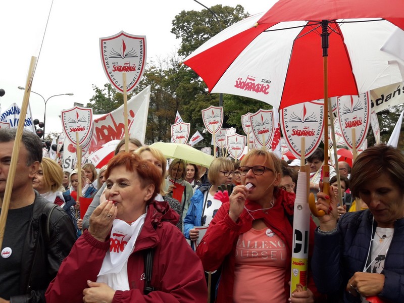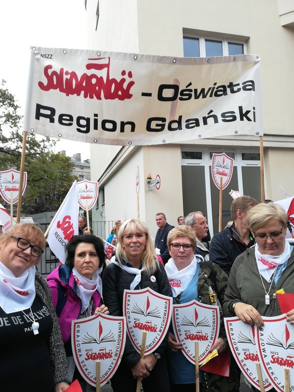 Brak należytych podwyżek wynagrodzeń, wydłużenie ścieżki awansu zawodowego z 10 do 15 lat, obligatoryjna ocena pracy dokonywana co 3 lata w oparciu o liczne, bardzo wygórowane kryteria nadal istniejące godziny karciane, to powody przygotowania czerwonej kartki dla Pani Minister. Już w maju podczas WZD Krajowej Sekcji delegaci postawili votum nieufności wobec Pani Minister. Z samego Gdańska 15.09.2018 r. o 6 rano wyruszyły 2 pełne autokary.