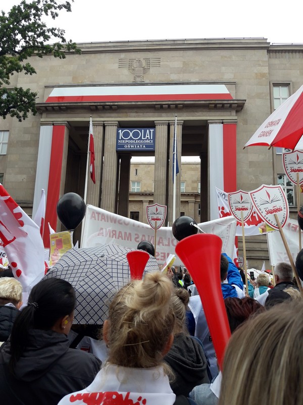 Z całego kraju, wszystkich regionów przyjechali Związkowcy a także osoby niezrzeszone, by wyrazić swoje niezadowolenie z degradacji zawodu nauczyciela. Delegację protestujących przyjęła Pani Minister obiecując przekazanie postulatów Panu Premierowi Morawieckiemu.