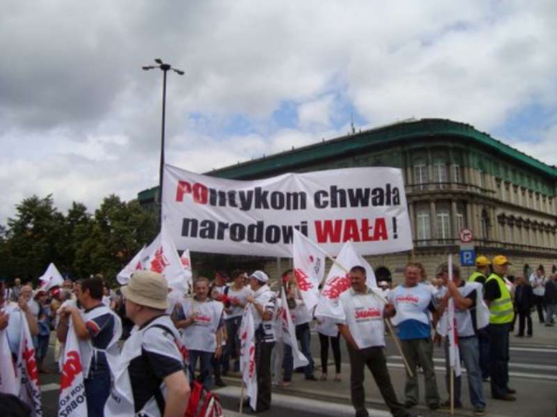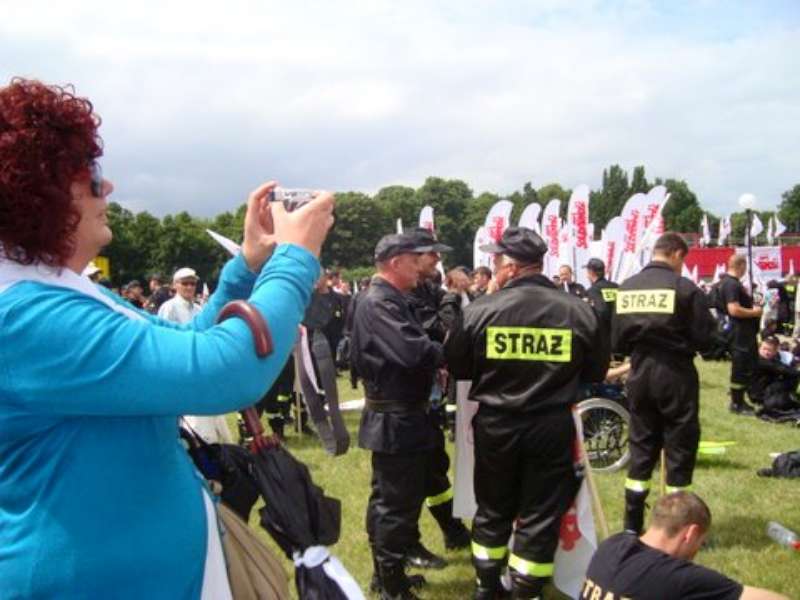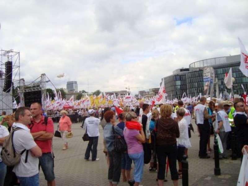 Wszyscy demonstrujący swoje niezadowolenie z polityki państwa podążali na Plac Piłsudskiego, miejsca spotkania całej ,,Solidarnościowej'' rodziny, początku manifestacji. Warszawa tonęła w biało-czerwonych flagach. Na Placu już trwał koncert Pawła Kukiza i zespołu Piersi przeplatany wypowiedziami lidera oraz przywódców związkowych z Komisji Krajowej NSZZ "Solidarność'' i z organizacji międzynarodowych. Usłyszeliśmy w wypowiedzi artysty, jak bardzo zawiódł się na politykach rządu i posłach, którzy nie realizują obiecanych programów i postulatów wyborczych. Nie interesuje ich człowiek, jego los i życie. Mówił również o negatywnych zmianach w postawach niektórych dziennikarzy, których w latach przemian traktował jak ,,bóstwa''. Wymieniał ich nazwiska, tytuł gazety. Nad Placem dumnie łopotały flagi "Solidarności'', wznosiły się wysoko symbole poszczególnych regionów, banery z hasłami, rysunkami i postulatami. Przewodniczący KK NSZZ "Solidarność'', Piotr Duda, powiedział o celu protestu - sprzeciwie przeciwko rosnącym cenom, coraz większej biedzie, wysokiemu bezrobociu, braku dialogu społecznego i oczekiwaniu przez nasz związek na wzrost płacy minimalnej do poziomu 50% przeciętnego wynagrodzenia. Dziś byłoby to ok. 1700 zł. Wzrost płacy minimalnej to: lepsza jakość życia osób najmniej zarabiających i ich rodzin, lepszy start dla młodych na rynku pracy, wyższe w przyszłości emerytury, większe wpływy do budżetu.