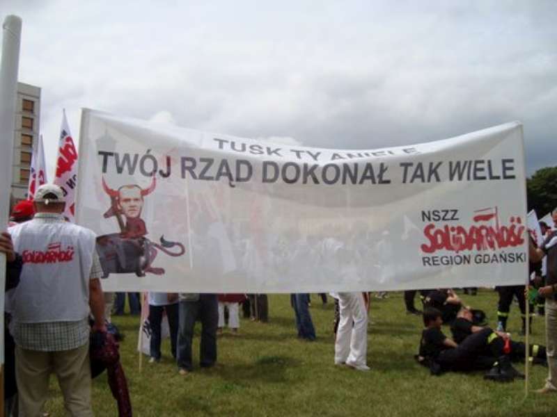Następnie ulicami miasta ruszył głośny kilkudziesięciotysięczny pochód z naczelnym hasłem ,,POLITYKA WASZA - BIEDA NASZA''. Na czele kolumny unosił się 7-metrowy sterowiec z logo ,,Solidarności''. Pokojowa manifestacja zakończyła się po wręczeniu przez delegację NSZZ ,,Solidarność'' premierowi Tuskowi petycji. Wszyscy manifestujący zostali powitani przez władze związkowe przed Kancelarią Prezesa Rady Ministrów.