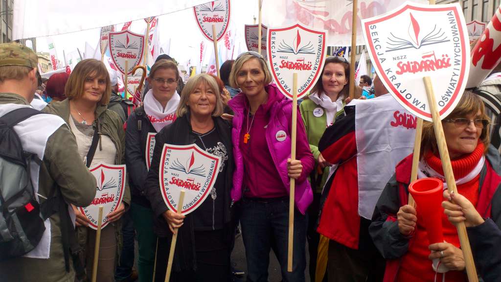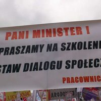 Inne hasła to: ,,Chcemy być dobrze opłacani zgodnie z platformy obietnicami'', ,,Zapraszamy Panią Minister na szkolenie z podstaw dialogu społecznego - pracownicy oświaty''.