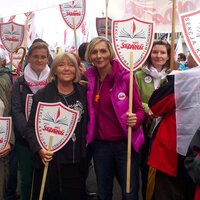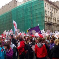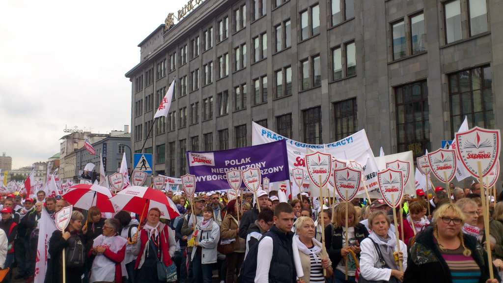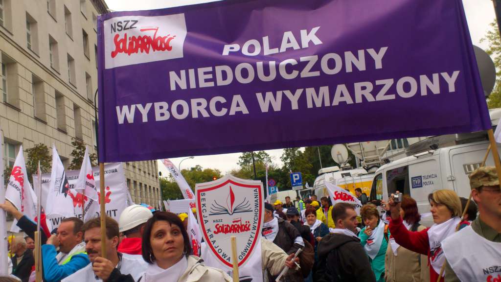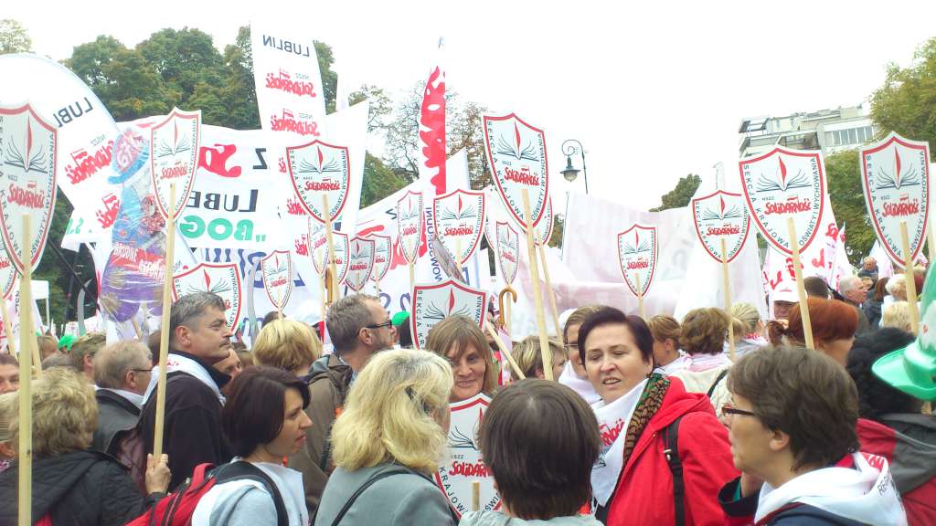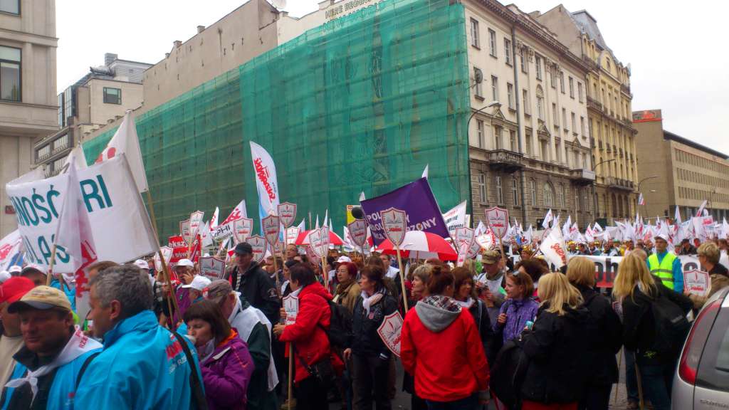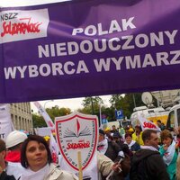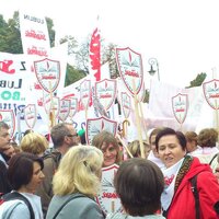 Tym razem deszcz nie padał. Pod Sejm dotarliśmy ok. godz. 11-tej. W ciągu godziny zebrał się tłum ludzi z flagami NSZZ ,,Solidarność'', z hasłami, banerami. Wśród napisów jakie nieśliśmy na banerach największe zainteresowanie mediów wzbudzał ten z napisem -,,Polak niedouczony - wyborca wymarzony'' autorstwa Hani Minkiewicz.