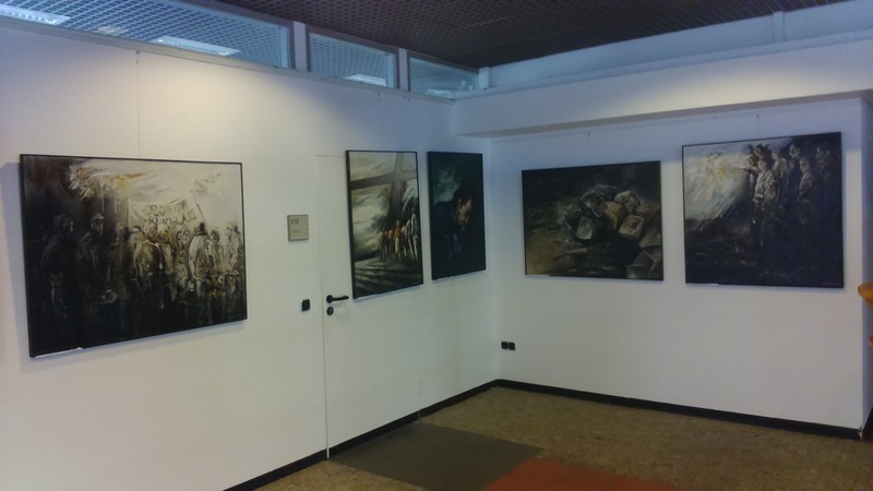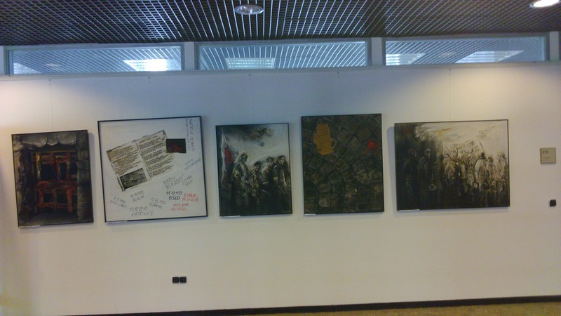 Wystawę otworzyła Przewodnicząca KM POiW Pani Bożena Brauer, która również przedstawiła biogram twórcy. Potem głos zabrał sam artysta, bardzo emocjonalnie opowiedział zebranym o swojej działalności artystycznej oraz odniósł się do cyklu dwunastu obrazów, które mogliśmy podziwiać. „Obrazy te to wstrząsający, a zarazem bardzo bolesny zapis poruszających chwil naszego narodu. Z zadumą oglądaliśmy te tragiczne sceny, pełne bólu, wiedząc, że to właśnie one otworzyły nadzieję na lepsze życie. Życie w innym świecie. Życie w wolnej Polsce. Artysta znany na europejskich salonach pokazał fragment swojej twórczości związanej z rodzącym się ruchem solidarnościowym i okresem stanu wojennego”. Pan Andrzej Piwarski był również bardzo zaangażowany w działalność społeczną - brał udział w wielu manifestacjach i sympozjach przeciwko stanowi wojennemu w Polsce oraz na rzecz narodów ciemiężonych przez reżimy komunistyczne. Artysta znany na europejskich salonach pokazał fragment swojej twórczości związanej z rodzącym się ruchem solidarnościowym i okresem stanu wojennego”. Pan Andrzej Piwarski był również bardzo zaangażowany w działalność społeczną - brał udział w wielu manifestacjach i sympozjach przeciwko stanowi wojennemu w Polsce oraz na rzecz narodów ciemiężonych przez reżimy komunistyczne.Wystawie malarskiej towarzyszyła wystawa fotograficzna Pana Wojciecha Milewskiego opowiadająca o najważniejszych wydarzeniach z historii Soliadarności. Ponadto można było też zobaczyć nagrodzone w wojewódzkim konkursie plastycznym „Polska- moje miejsce, mój kraj”prace uczniów.