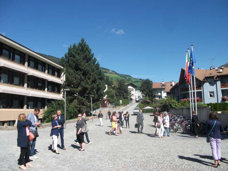 Kolejnym etapem szkolenia była wizyta w Urzędzie Szkolnym w Bolzano, gdzie poznaliśmy system działania oświaty na terenie zamieszkałym przez ludność niemiecko i włoskojęzyczną. Szczególnym powodem do dumy miejscowych urzędników jest wprowadzenie do oferty edukacyjnej języka ladyńskiego, którym mówi 4% miejscowej ludności. W deszczowy poranek odwiedziliśmy Merano, a w nim Liceum im. Marii Curii. Według informacji, których udzieliła nam pani dyrektor, szkoła może być znakomitym przykładem dostosowania potrzeb edukacyjnych do specyfiki regionu, z którego pochodzą uczniowie. Najwięcej osób w tej części Włoch poszukuje pracy w turystyce i w rolnictwie, stąd szkoła proponuje profil turystyczny, biotechnologię czy dietetykę.